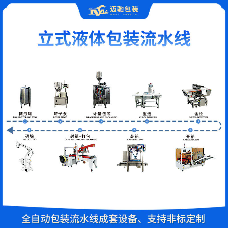 邁馳,是一家專業生產全自動液體包裝流水線的生產廠家,無滴漏、高精度,可根據物料不同特性定制包裝流水線設備,一對一定制化服務,26年包裝行業經驗助力生產企業將本增效,提高產能。